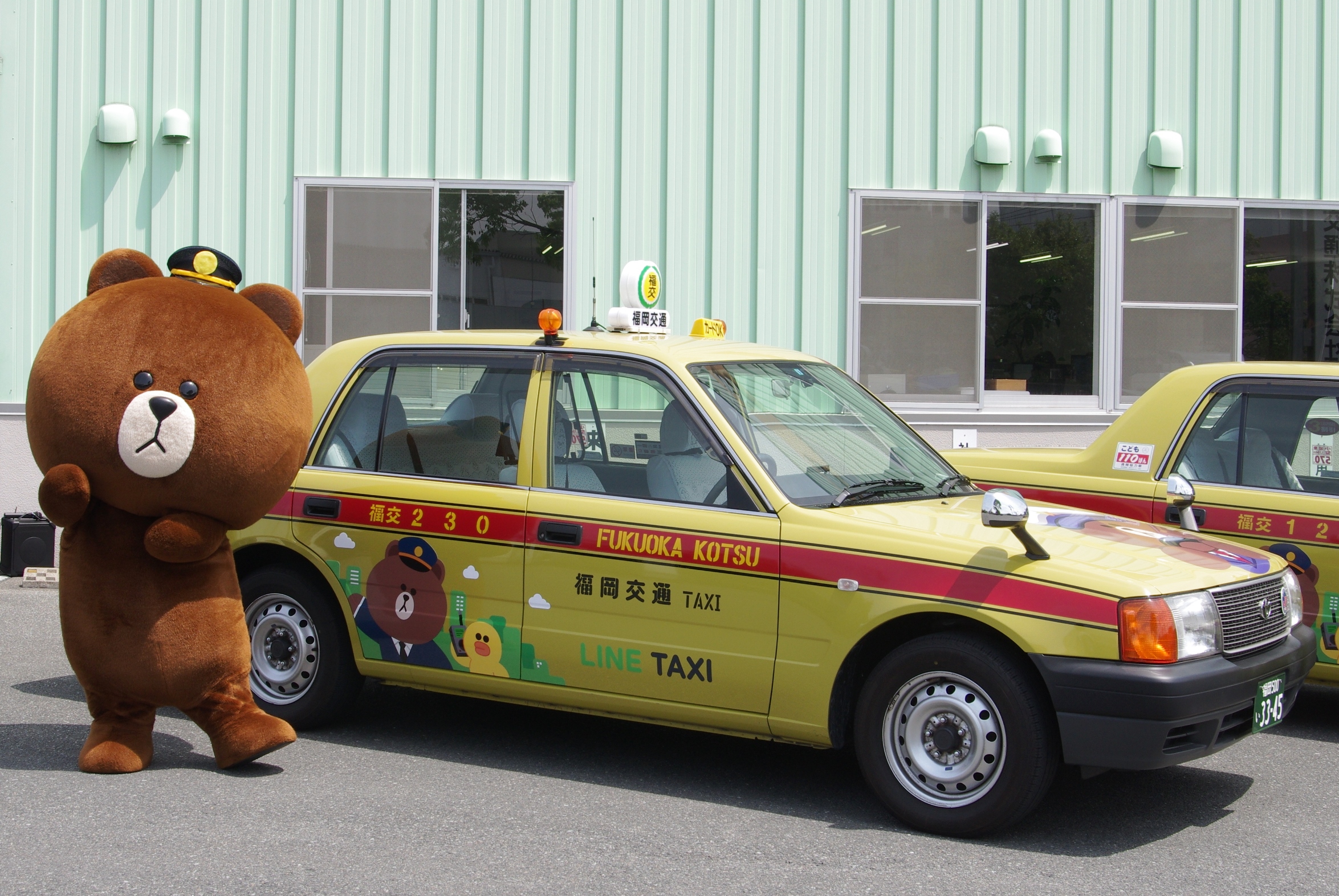 本日から、 福岡市ではブラウンとサリーが登場するラッピング「LINE TAXI」が走ります!