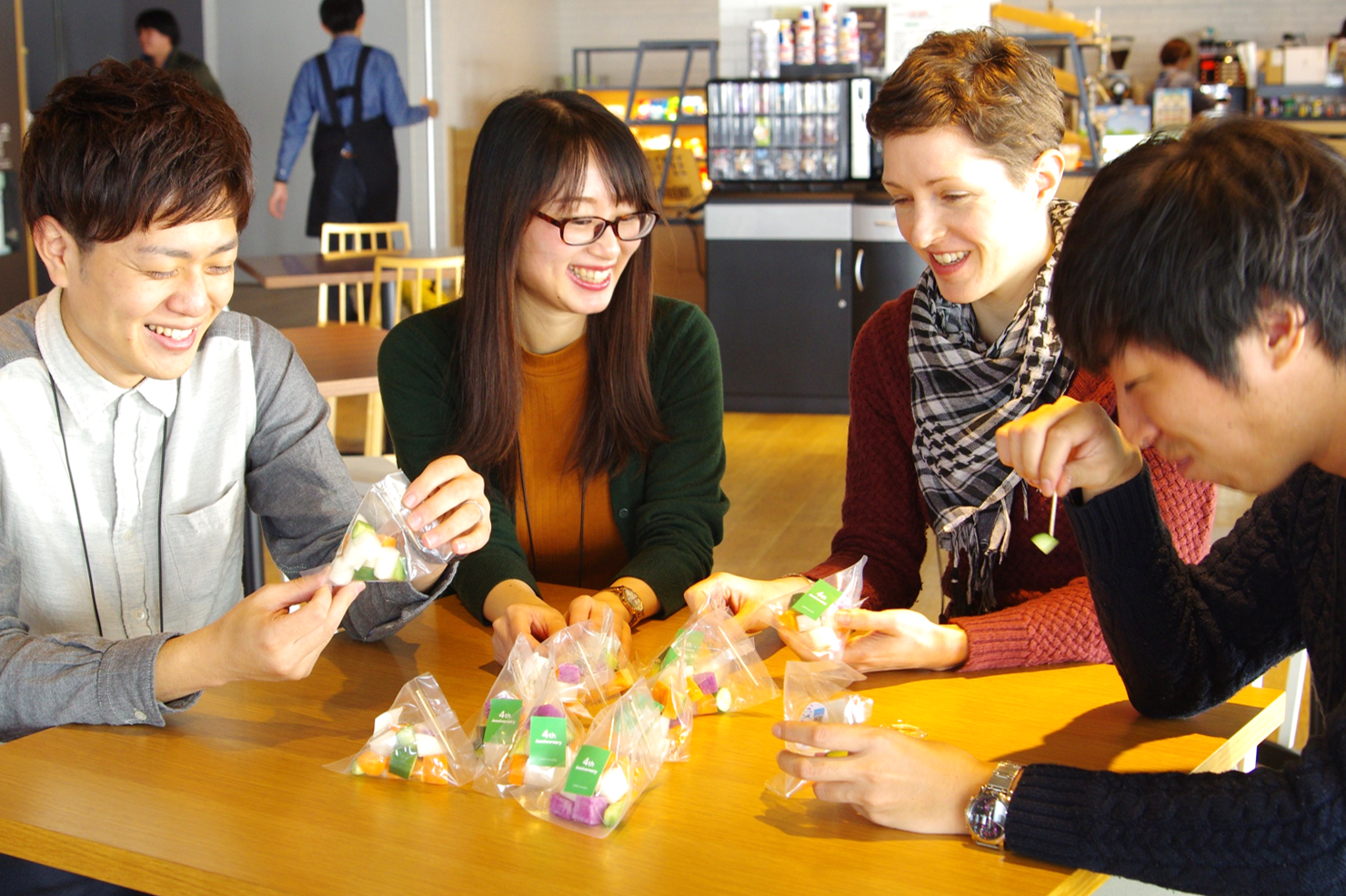 なお、社員も4周年を記念して配布されたプチギフトを社内カフェで楽しみました!